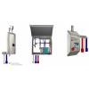 При открытии правого шарового крана или выборе правого переключателя запускается процедура очистки. С помощью регулятора давления на воздушном трубопроводе можно увеличивать или уменьшать количество воздуха для регулировки состава пены. Установка обладает гигиеничной конструкцией и предназначена для настенного монтажа.
