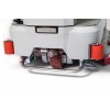 - Привод на переднее колесо обеспечивает высокую маневренность. Радиус разворота всего 80 см. У данного привода более низкий уровень шума, по сравнению с приводом на задние колёса. Привод хода с электронным контролем скорости осуществляет движение до 6 км/ч. На машине установлена дополнительная педаль тормоза, дающая оператору больший контроль при управлении машиной.