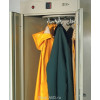 Heute Mistral 18 – данный двухдверный сушильный шкаф был создан специально для рабочей спецодежды, плохо поддающейся сушке. Шкаф закрывается на цилиндрический замок. Вращающаяся круглая вешалка, смонтированная на потолочной панели шкафа, облегчает подвешивание и снятие одежды. Вентилятор с нагревом подогревает всасываемый воздух и подает его внутрь шкафа. При этом круглая вешалка медленно вращается в шкафу, обеспечивая щадящую сушку развешанной на ней мокрой одежды любого типа. Встроенный 24-часовой таймер позволяет устанавливать продолжительность сушки (от 1-го до 3-х час в зависимости от типа одежды и степени ее влажности), а также время сушки (например, с 20:00 час до 22:00 час). Вода, стекающая с одежды, а также конденсат, образующийся при сушке, отводятся из шкафа через маленькое сточное отверстие в полу шкафа.Возможные варианты поставки: